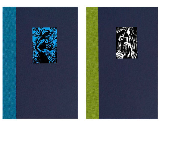 Hand Bound by Roger Grech in Mi-Teintes Indigo blue paper and Brillianta cloth in either Blau (Blue) or Frocshgrün (Green) with illustrated labels.