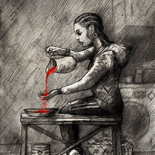 This edition is quarter bound in Scarlett Red chieftain goat skin prepared by Hewit's, rounded and backed with black Dubletta cloth to cover the boards. Hand bound by Roger Grech at his arts bindery in West Yorkshire. Roger has worked with many leading presses including Suntup Editions and St James Park Press.